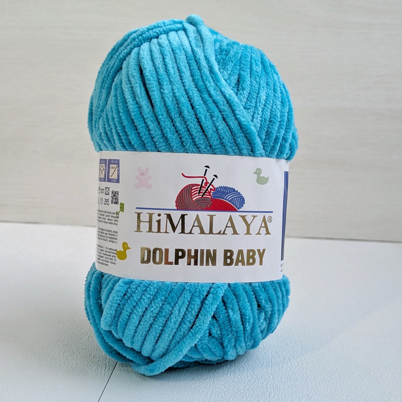 100г – 120м Himalaya Dolphin Baby (Долфін Бебі Хималая) фактурна велюрова пряжа з ніжного поліестеру. Долфін Бебі підходить навіть малюкам, з Dolphin Baby вяжуть не тільки пледи, а й м’які іграшки, зручні кофтинки, подушки, шапки, пінєтки… Велюрову пряжу Долфін можна купити в магазині Паутинка у Вінниці